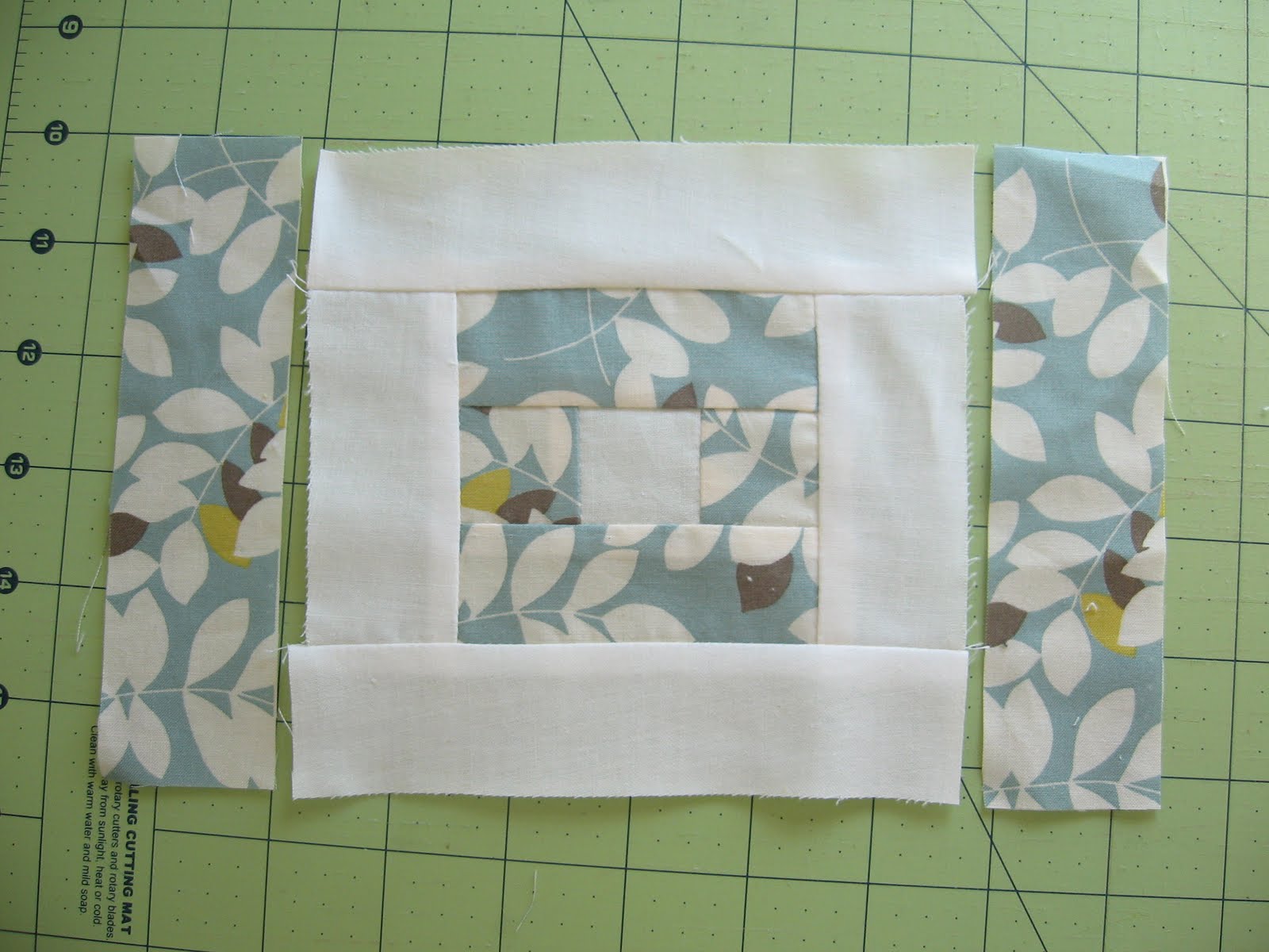 2. Stitch the two printed 3.5" strips to the top and bottom. Press seams toward the print.