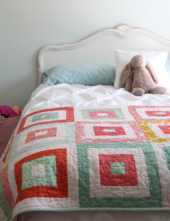 This quilt has been sitting on Sophie’s bed for a couple of months and has already been used, loved, and washed during the warm summer.